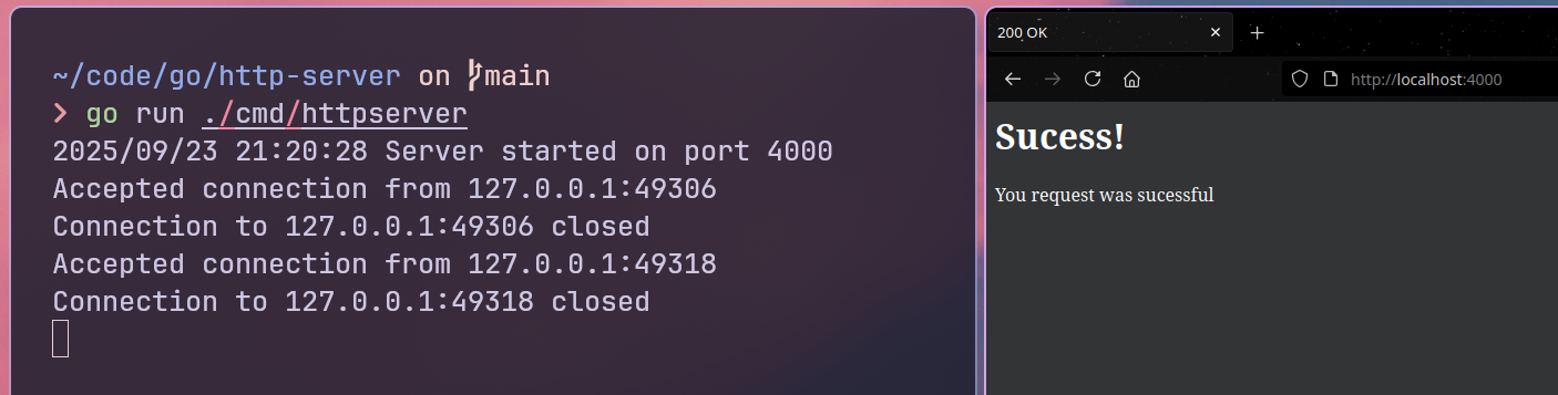 Minimal implementation of an HTTP/1.1 server built directly on top of go TCP sockets.